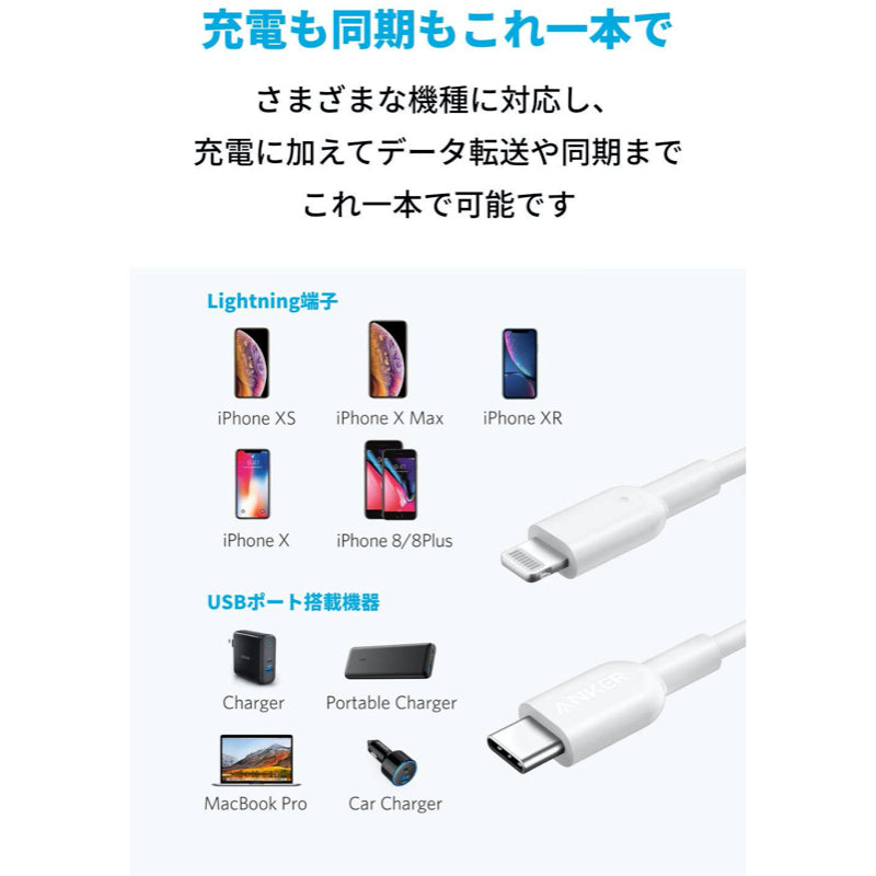 Anker PowerLine II USB-C & ライトニング ケーブル (2本セット) 0.9m