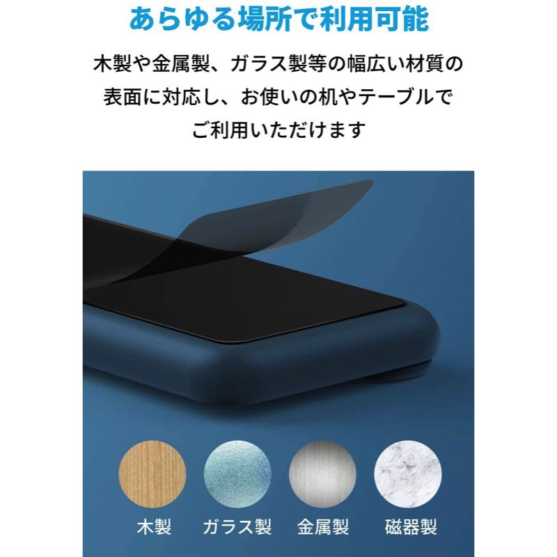 木製や金属製、ガラス製等の幅広い材質の表面に対応し、お使いの机やテーブルでご利用いただくことが可能です。