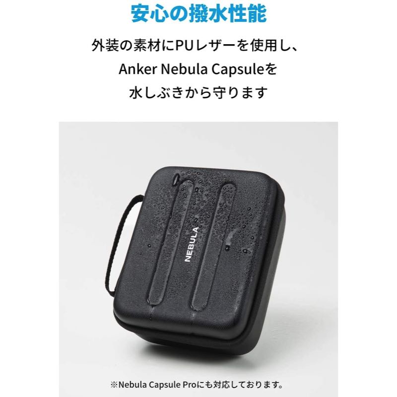 ケース外装の素材に上質なPUレザーを使用し、お使いのNebula Capsule / Capsule Proを水しぶきから守ります。