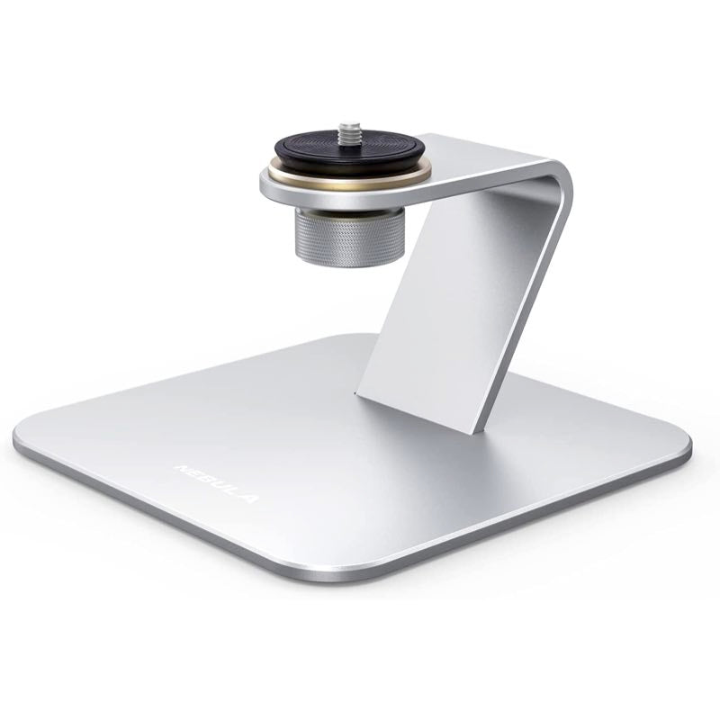 Soundcore Nebula P1を寝室に上向き設置し天井投影するが、足元天井の投影が限界だった。このスタンドで本体に角度をつけることで、頭の方に投影できるようになった。枕をいつも通りにできて姿勢がかなり楽。