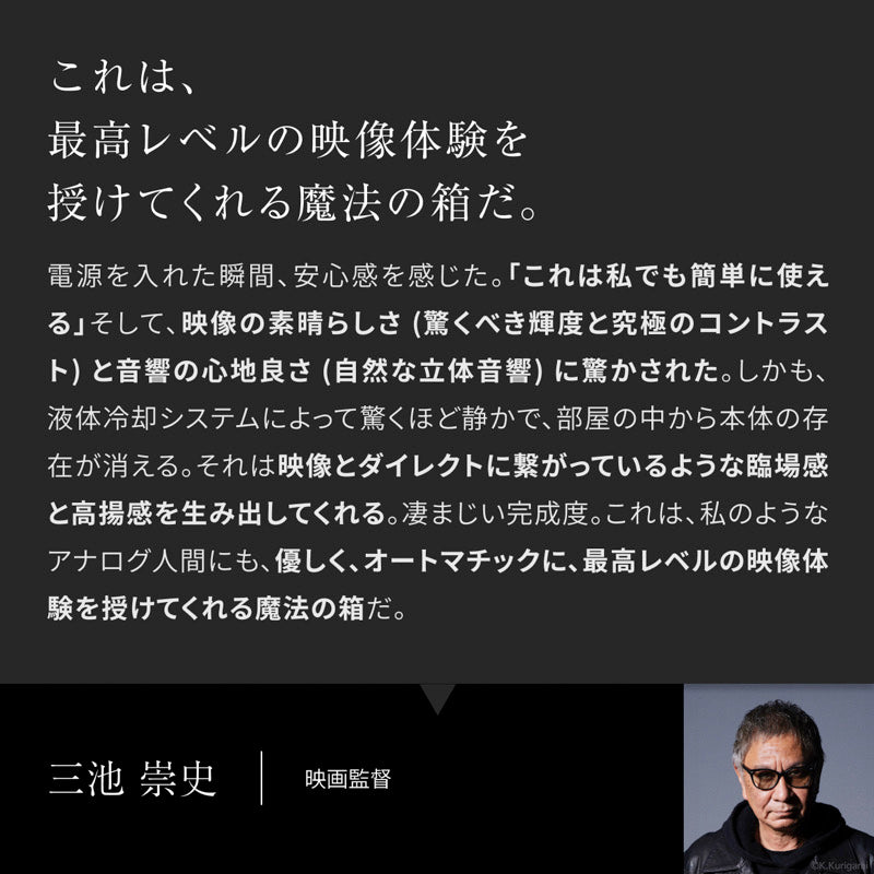 サテライトスピーカーにより実現した4.1.2chの没入型立体音響と、合計最大200Wの圧倒的な出力が生み出す迫力のサウンドで、聴こえるを超えた、「感じる」究極の没入体験。