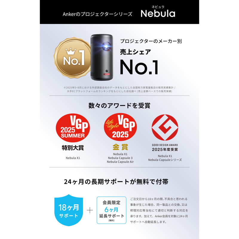| ご注意 | ・【対応機種】Soundcore Nebula P1 / P1i のみ ※P1 / P1i 以外のNebula製品には対応しておりません |