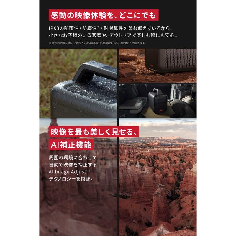 パッケージ内容 Nebula Mars 3、リモコン (単4形電池 × 2付属) 、電源ケーブル、クイックスタートガイド、18ヶ月保証 + 6ヶ月 (Ankerで会員登録後) 、カスタマーサポート
