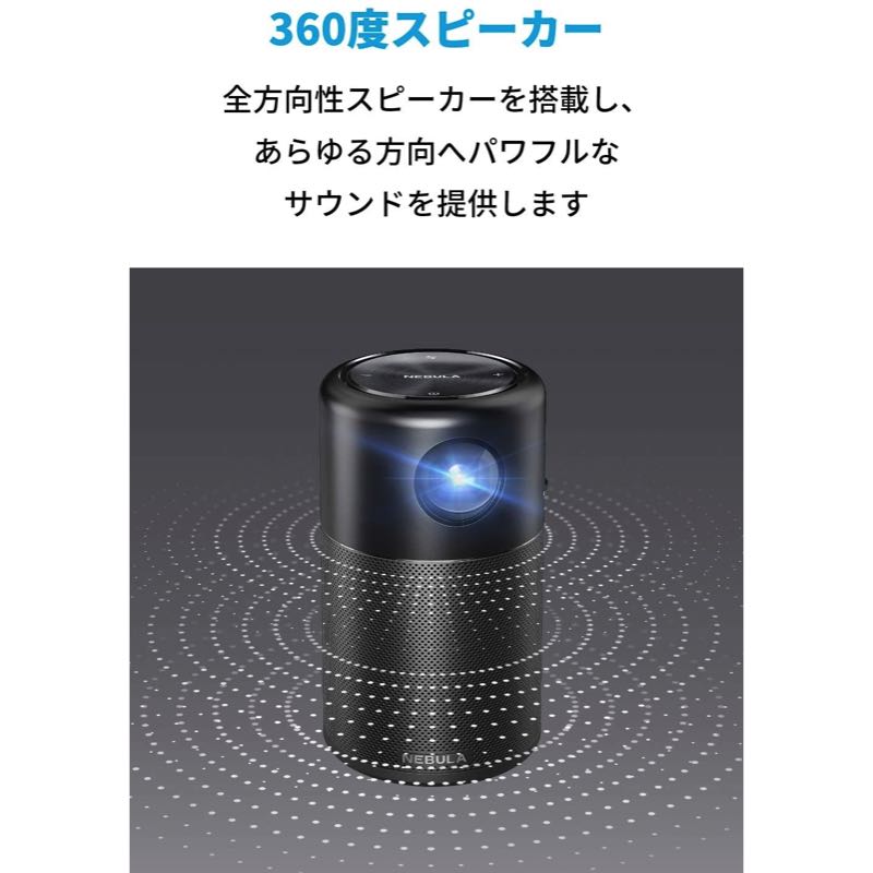 パッケージ内容 Nebula Capsule、充電用アダプター、Micro USBケーブル、リモコン (電池内蔵) 、クイックスタートガイド (取扱説明書) 、18ヶ月保証 + 6ヶ月 (Ankerで会員登録後)、カスタマーサポート
