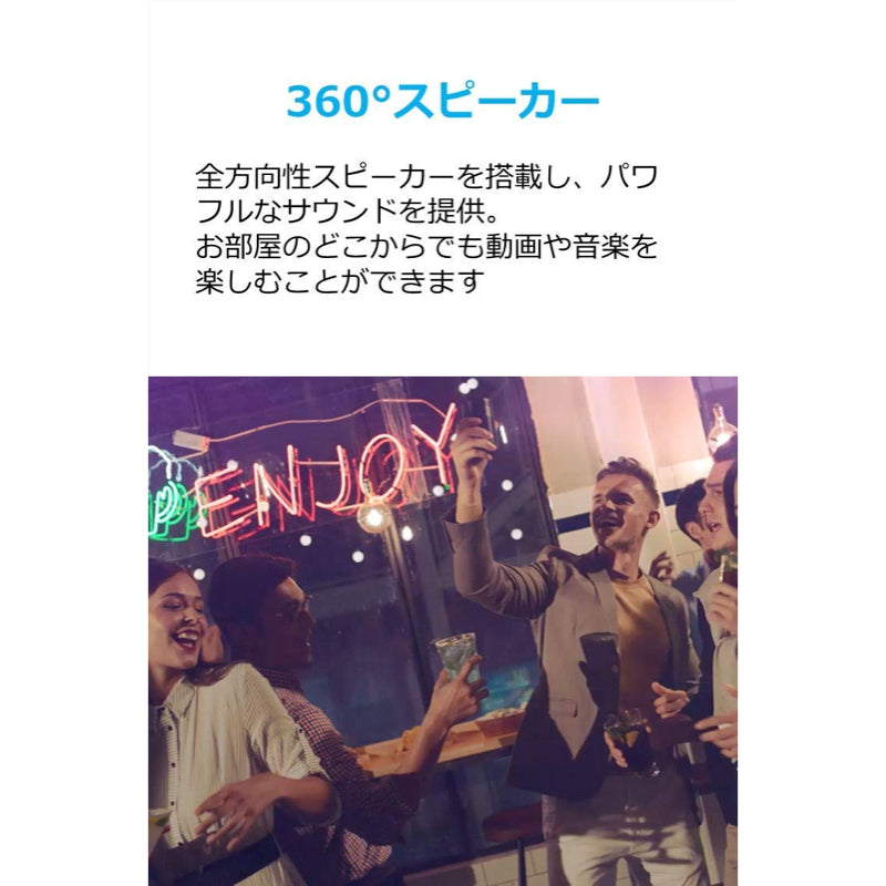 パッケージ内容 Nebula Capsule Pro、充電用アダプター、Micro USBケーブル、リモコン (電池内蔵) 、クイックスタートガイド (取扱説明書) 、18ヶ月保証 + 6ヶ月 (Ankerで会員登録後)、カスタマーサポート