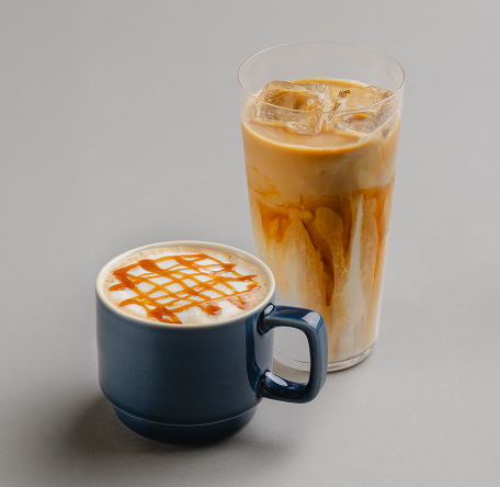キャラメルのリッチな甘さとエスプレッソの香ばしさとスチームミルクが織りなすハーモニー。
