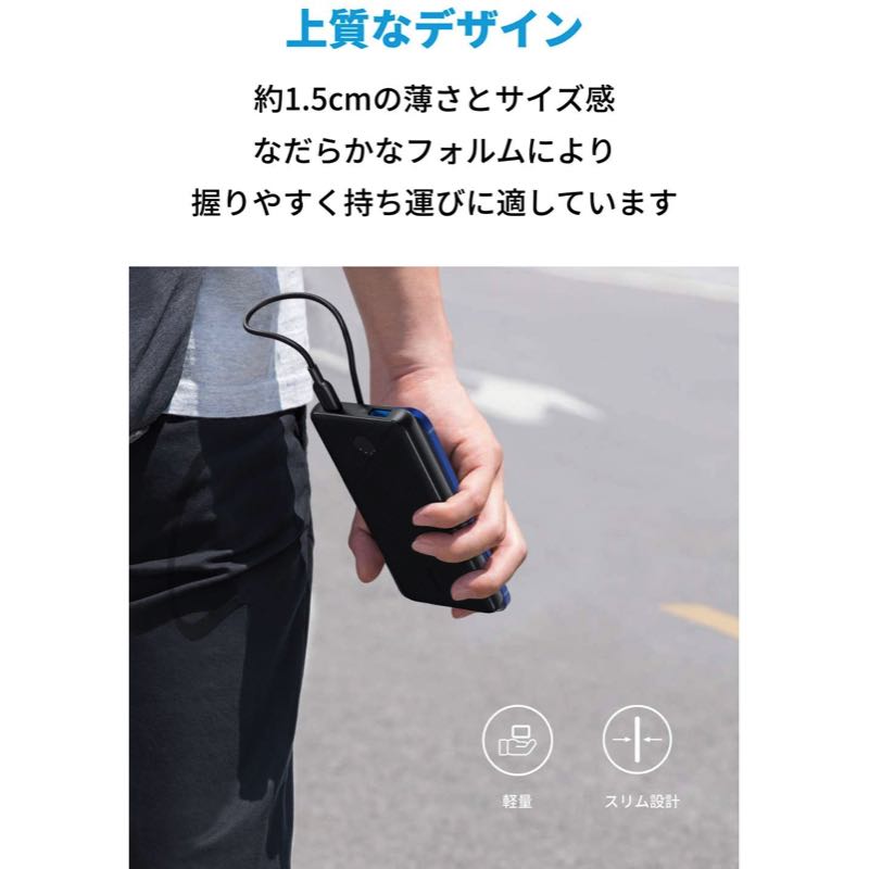 | パッケージ内容 | Anker PowerCore Slim 10000 PD 22.5W、2-in-1 USB-C Cable、トラベルポーチ、取扱説明書、36ヶ月保証 (au限定) 、カスタマーサポート |