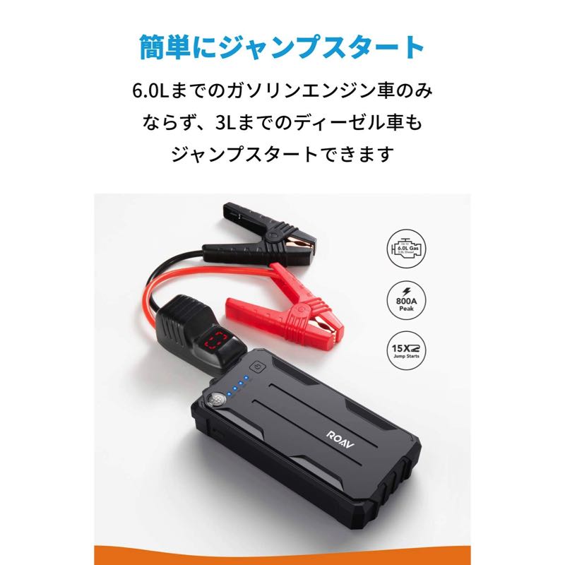 | パッケージ内容 | Roavジャンプスターター Pro、USB-A & USB-Cケーブル、クランプ付ジャンパーケーブル、キャリーケース、取扱説明書、18ヶ月保証 + 6ヶ月 (Ankerで会員登録後) 、カスタマーサポート | ||