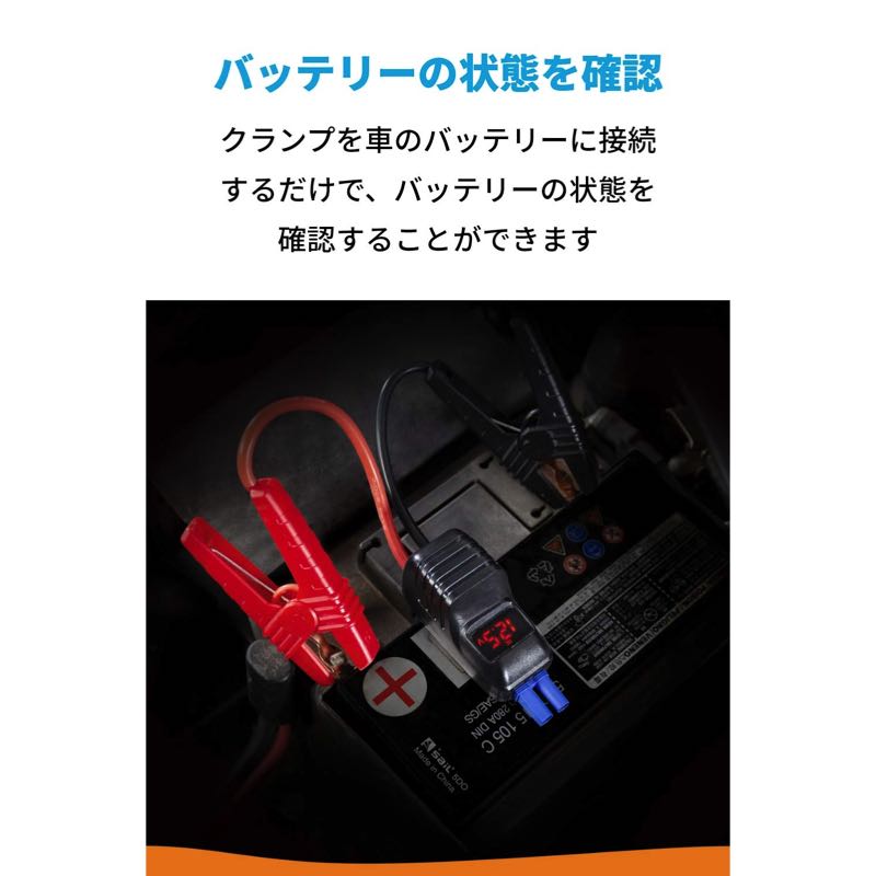 クランプを車のバッテリーに接続するだけで、バッテリーの状態をクランプに内蔵されたスクリーン上で確認することができます。緊急時にも利用可能