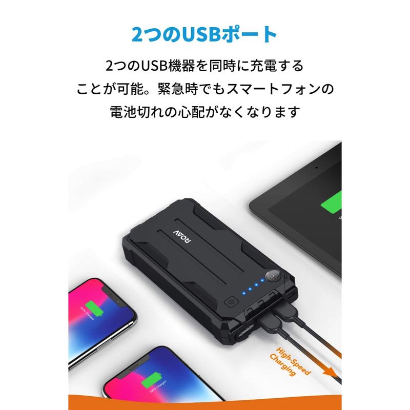 2つのUSB機器を同時に充電することが可能。緊急時でもスマートフォンの電池切れの心配がなくなります。優れた安全性
