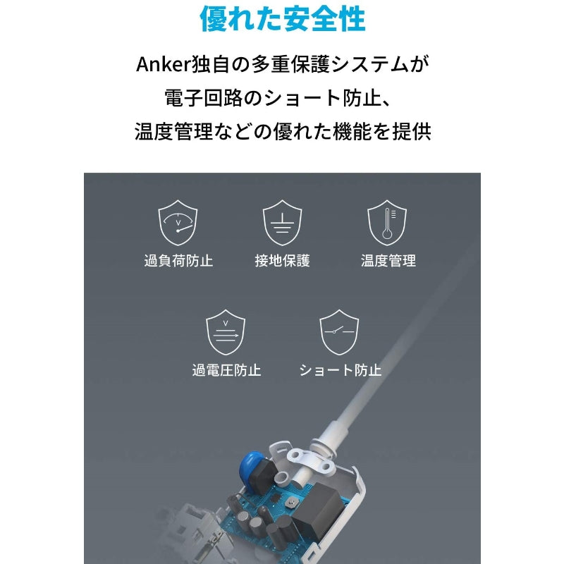 Anker独自の多重保護システムが電子回路のショート防止、温度管理などの優れた機能を提供し、長期間安心してお使いいただけます。ほこり防止シャッター付き