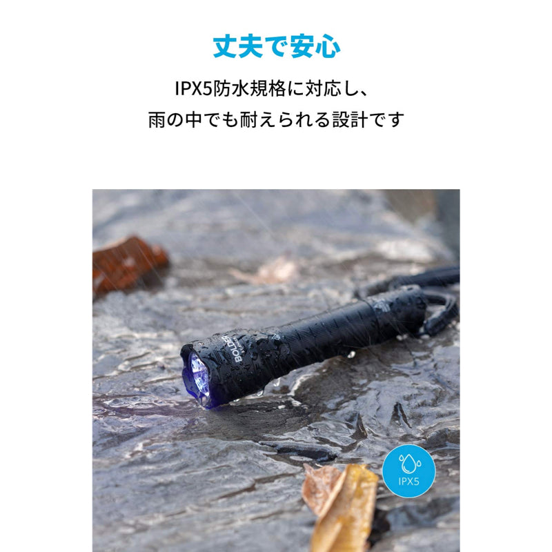 パッケージ内容 Anker Bolder UV LEDフラッシュライト、取扱説明書、Micro USBケーブル、18ヶ月保証 + 6ヶ月 (Ankerで会員登録後)、カスタマーサポート