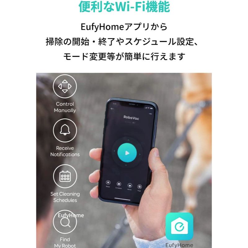 Eufy Cleanアプリから掃除の開始・終了のコントロールやスケジュール設定、モード変更等をスマートフォンから簡単に行えます。BoostIQテクノロジー