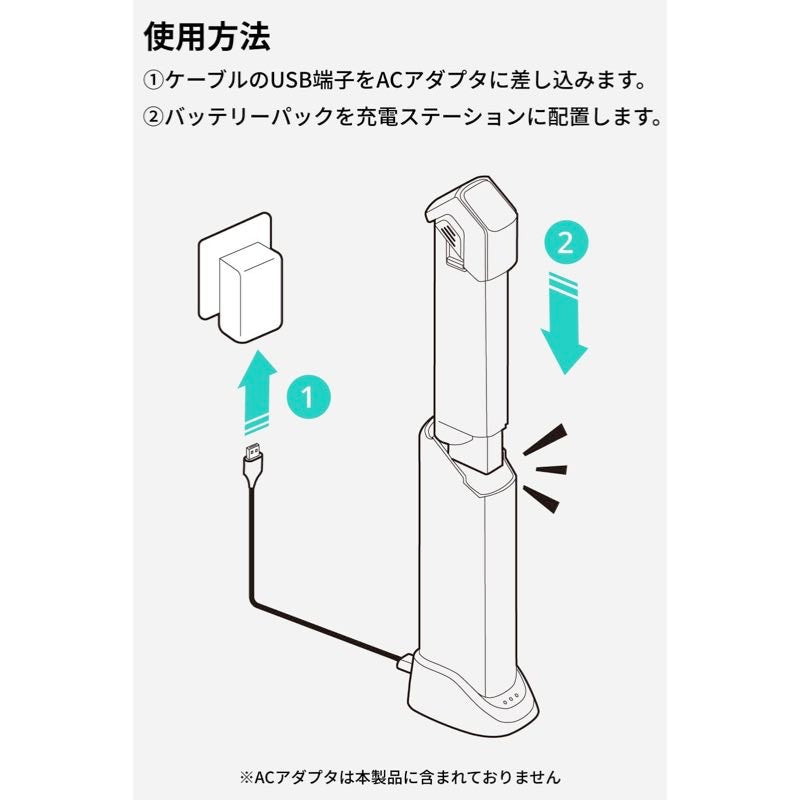 充電ステーションとケーブルを使用してバッテリーを別途充電することができます。