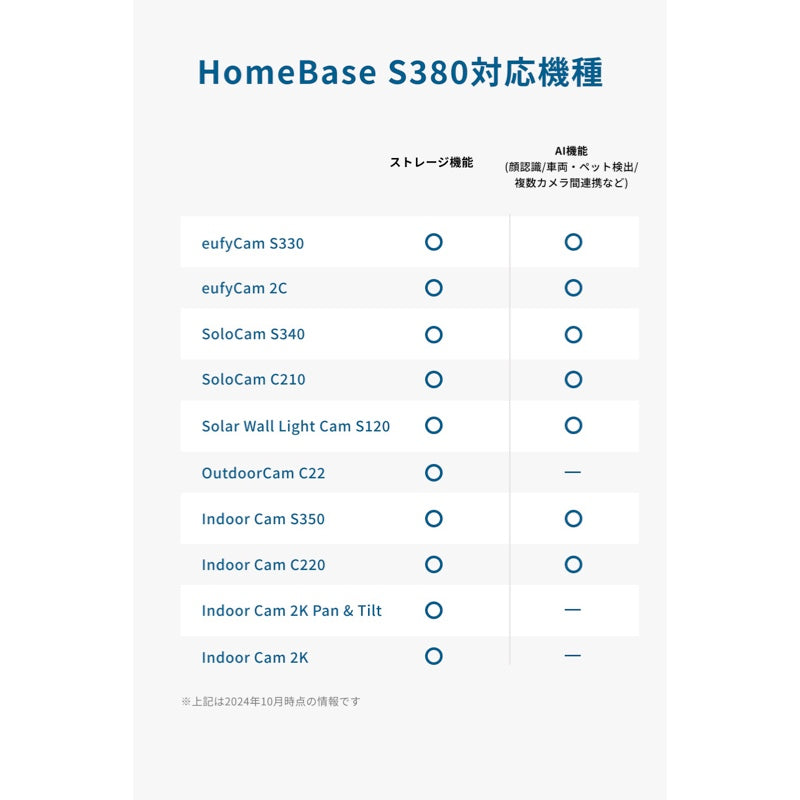 | 入力 | 5V=2A ( eufyCam S330 ) / 12V=2A ( HomeBase S380 ) | ||