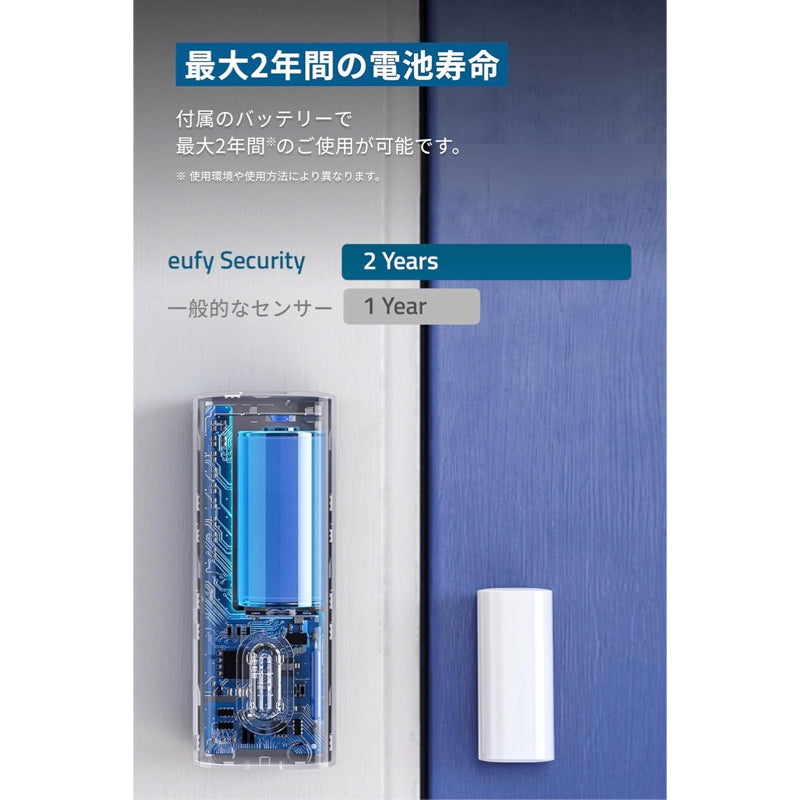 | パッケージ内容 | センサー本体、センサーマグネット、CR123Aリチウム電池、取り付け用ネジ (x3) 、防犯ステッカー、取扱説明書、18ヶ月保証 + 6ヶ月 (Ankerで会員登録後) 、カスタマーサポート | ||