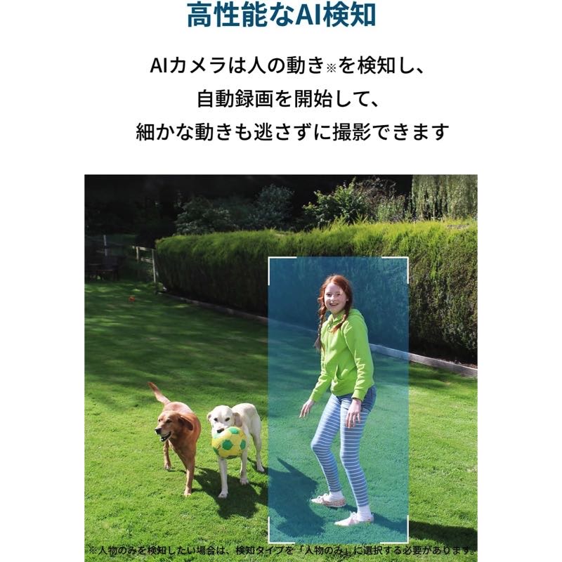AIカメラを搭載し、人の動きを検知し自動で録画を開始でき、細かな動きも逃さずに撮影。また、人を検知した時に、Eufy Securityアプリを通じて通知します。製品仕様