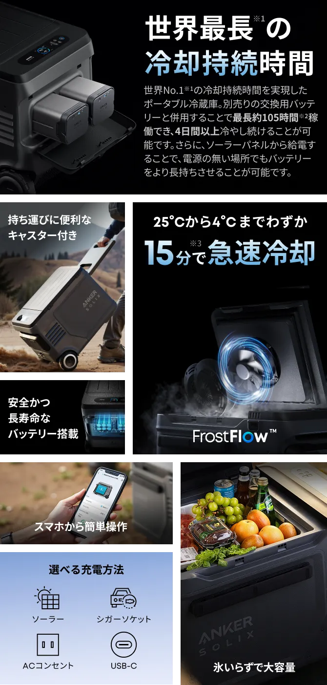 Ankerの独自技術FrostFlow™を搭載し、庫内温度を