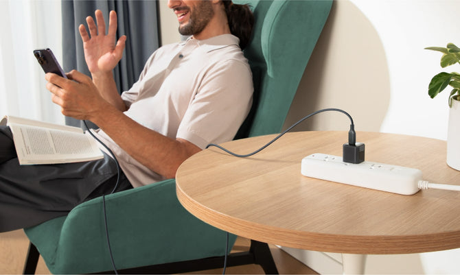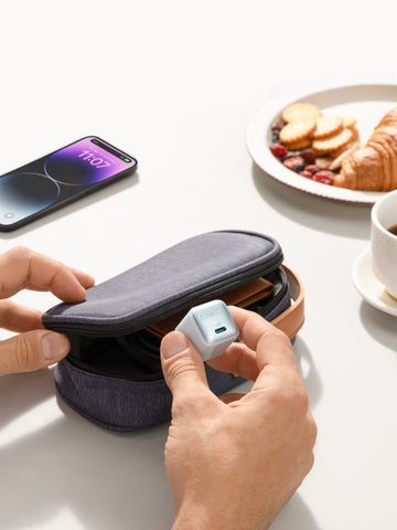 充電したい電子機器がUSBタイプCに対応していれば、汎用性のあるUSBタイプC充電器とケーブルはひとつずつで十分。電子機器ごとに充電器やケーブルを持ち運んだり、かばんの中でケーブルが絡まるストレスからも解放されます。出張や旅行の際も、荷物がかさばらずコンパクトに。