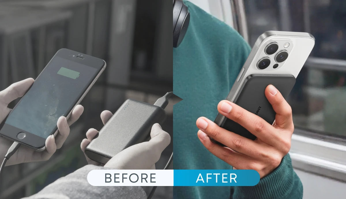 Ankerのマグネット式ワイヤレス充電対応モバイルバッテリーなら、充電中も片手で簡単にスマホを操作できる!