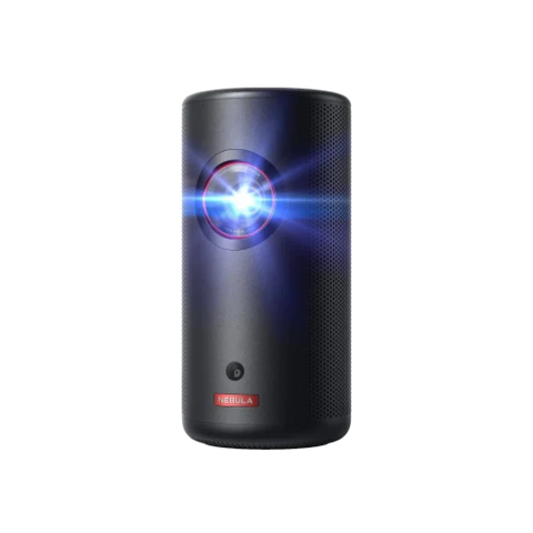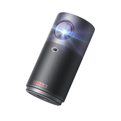 片手に収まるコンパクトサイズで持ち運びも簡単。便利な補正機能で、どんな場所でも投影できるから、テントの中で映像を楽しむことも。