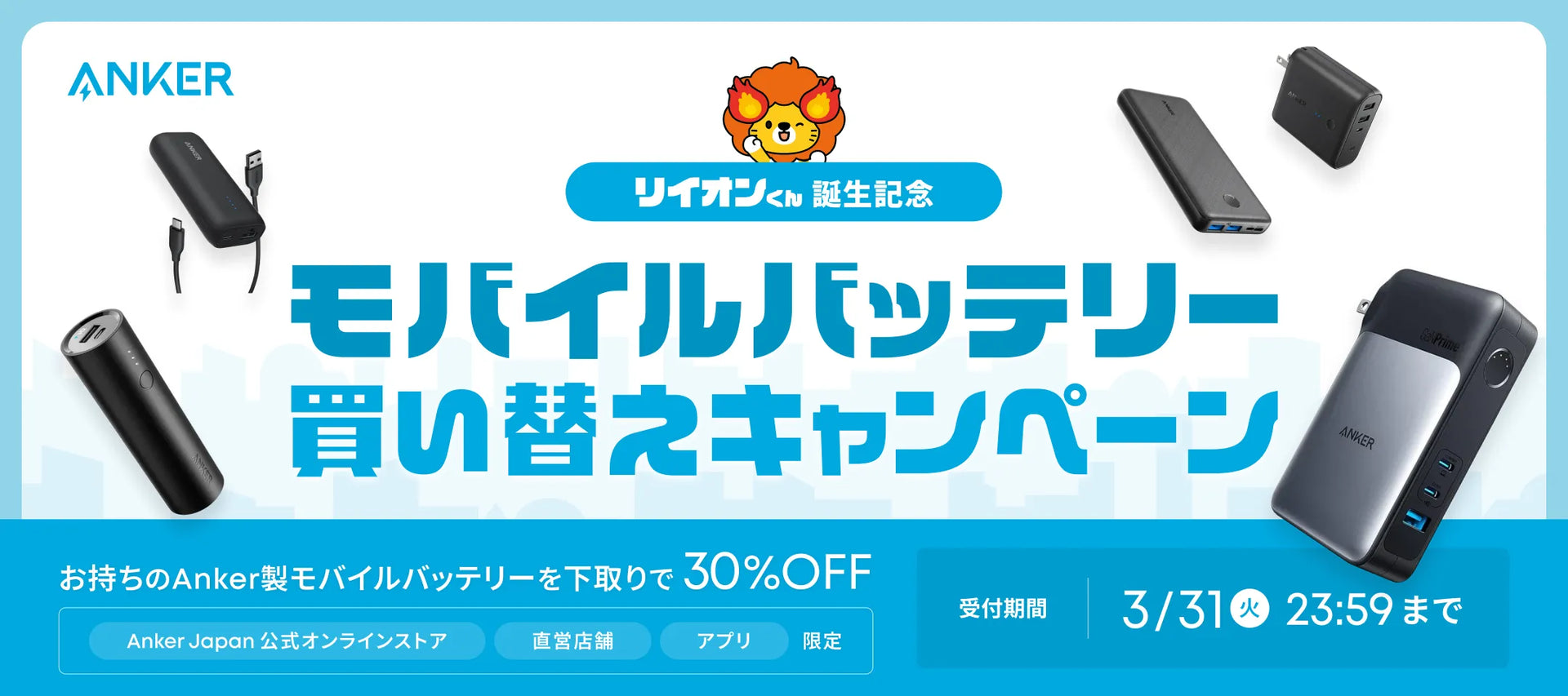 - ポータブル電源など、モバイルバッテリー以外のAnker製品は対象外です。
