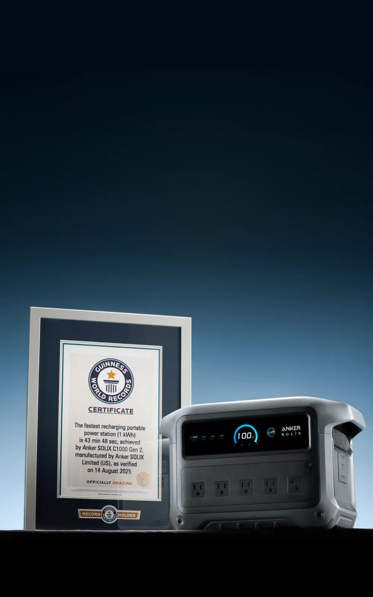 ※両面発電の100W / 200W / 400W帯の折りたたみ式ソーラーパネルにおいて (2025年8月Anker調べ)
