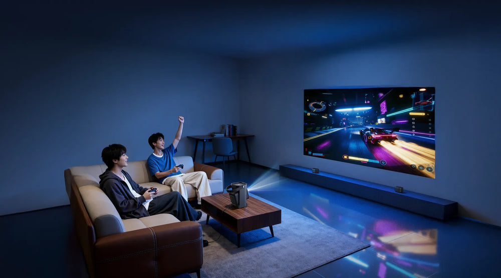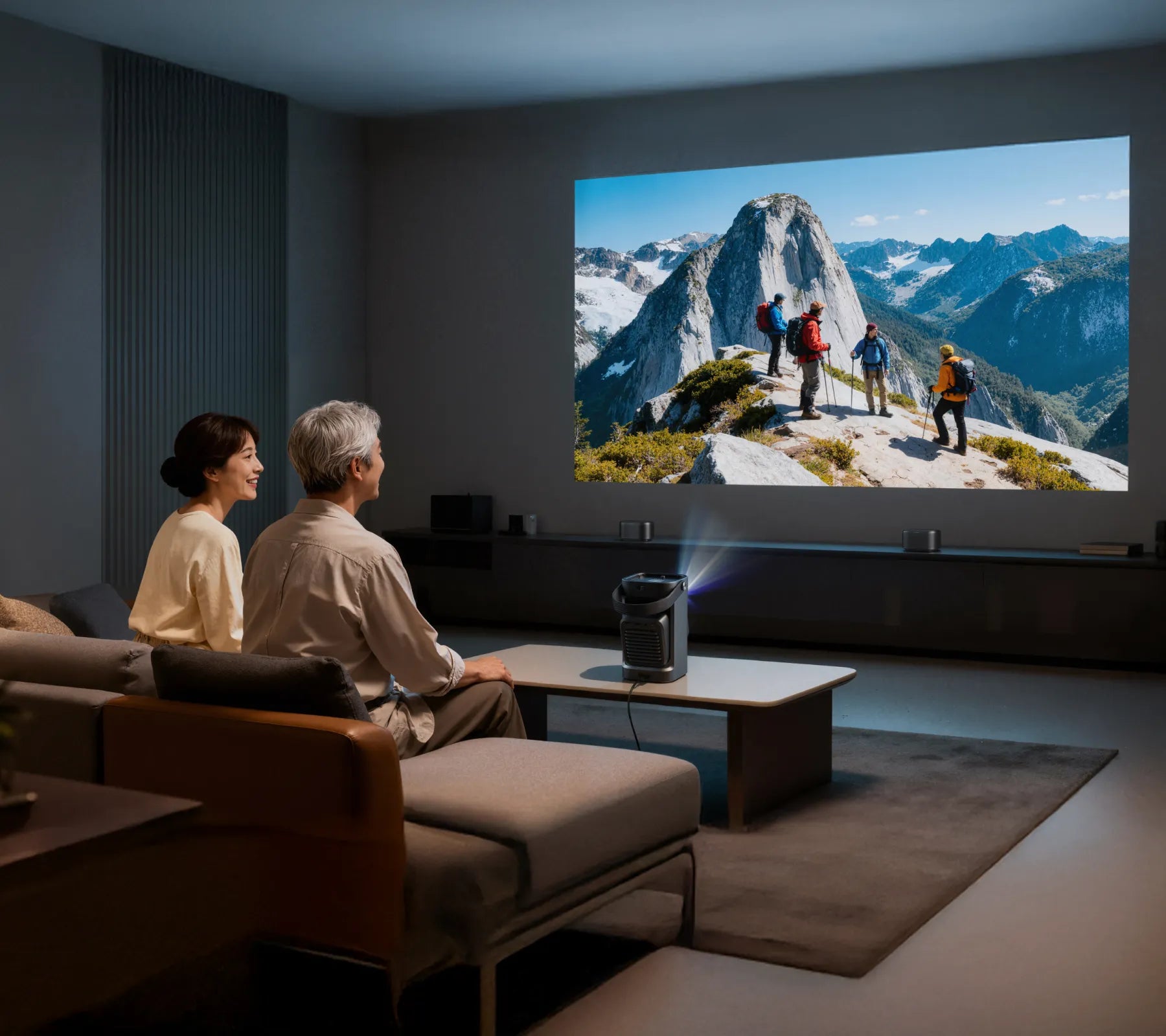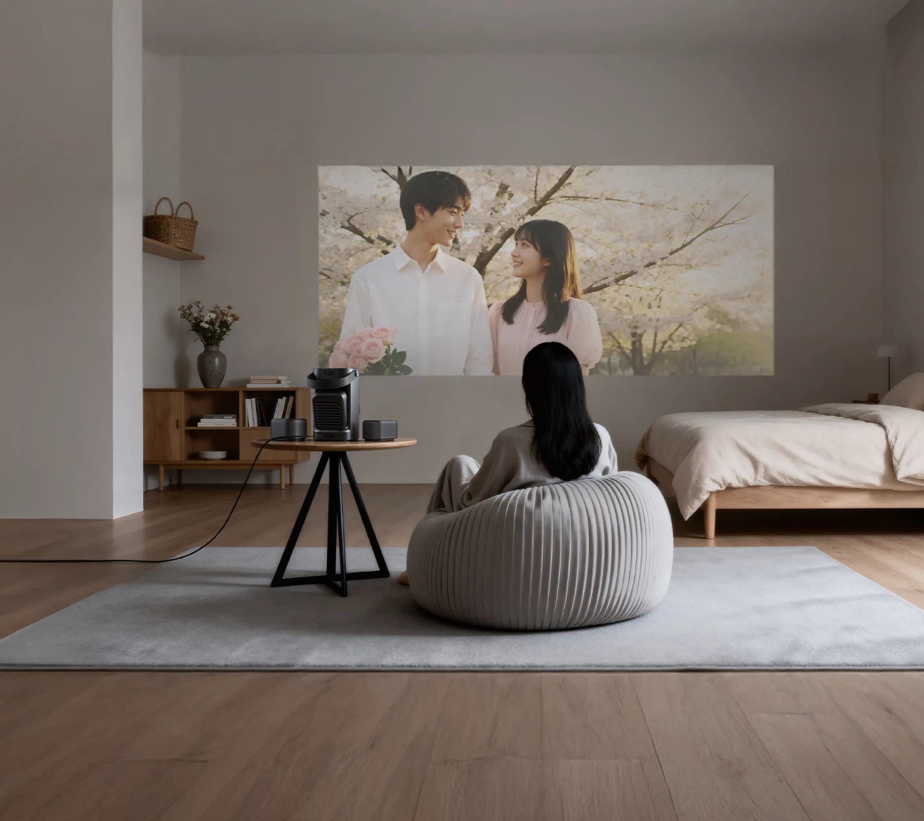 壁はもちろん、天井にも自由に投影でき、寝ながら本格的なシアター体験を実現。