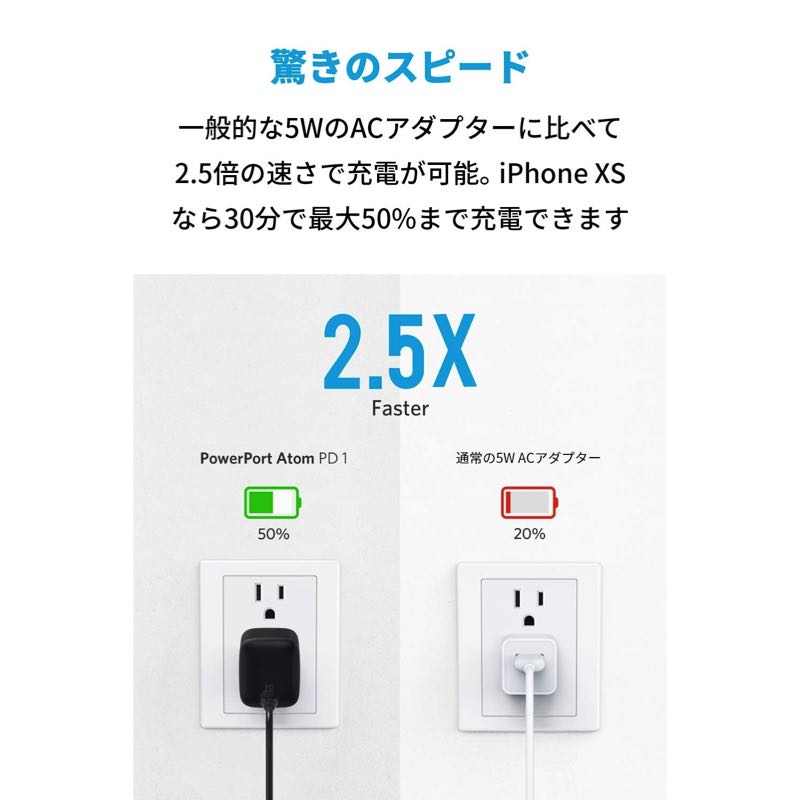 | パッケージ内容 | Anker PowerPort Atom PD 1、取扱説明書、18ヶ月保証 + 6ヶ月 (Ankerで会員登録後)、カスタマーサポート |