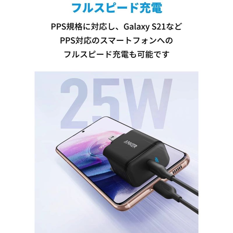| 出力 | 5.0V=3.0A /9.0V=2.8A (最大25W) | PPS出力: 3.3V-5.9V=3.0A (最大17.7W) / 3.3V-11.0V=2.25A (最大24.75W) |