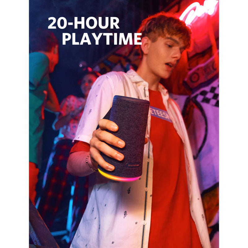 Soundcore Flare+はAnkerの業界最先端の充電技術を搭載しています。1度の充電で約20時間の連続再生が可能なSoundcore Flare+はバッテリーが切れることなく一晩中音楽をお楽しみいただけます。またモバイルバッテリーとしても利用できるため、スマートフォンのバッテリーを心配することもありません。