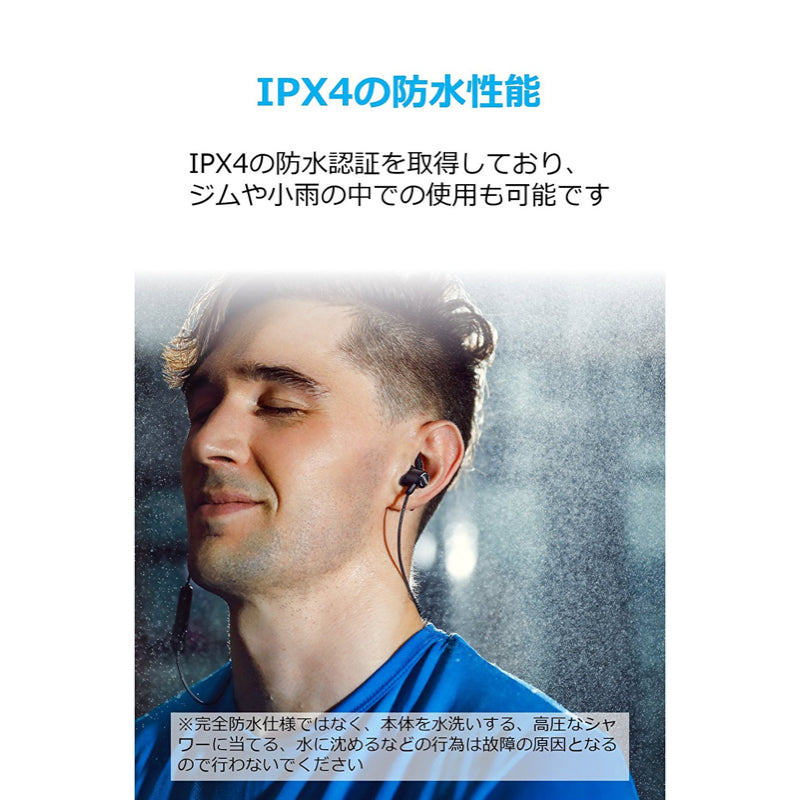 IPX5防水規格対応の外装と、内部のナノコーティングによる2層の防水性能によって、雨や運動時の汗にも耐えられます。(IPX5とは「あらゆる方向からの飛沫による有害な影響を受けない」と定義されています)