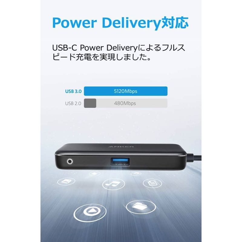 ハブとして使いながらも、USB-C Power Deliveryによるフルスピード充電が可能です高速かつ高解像度