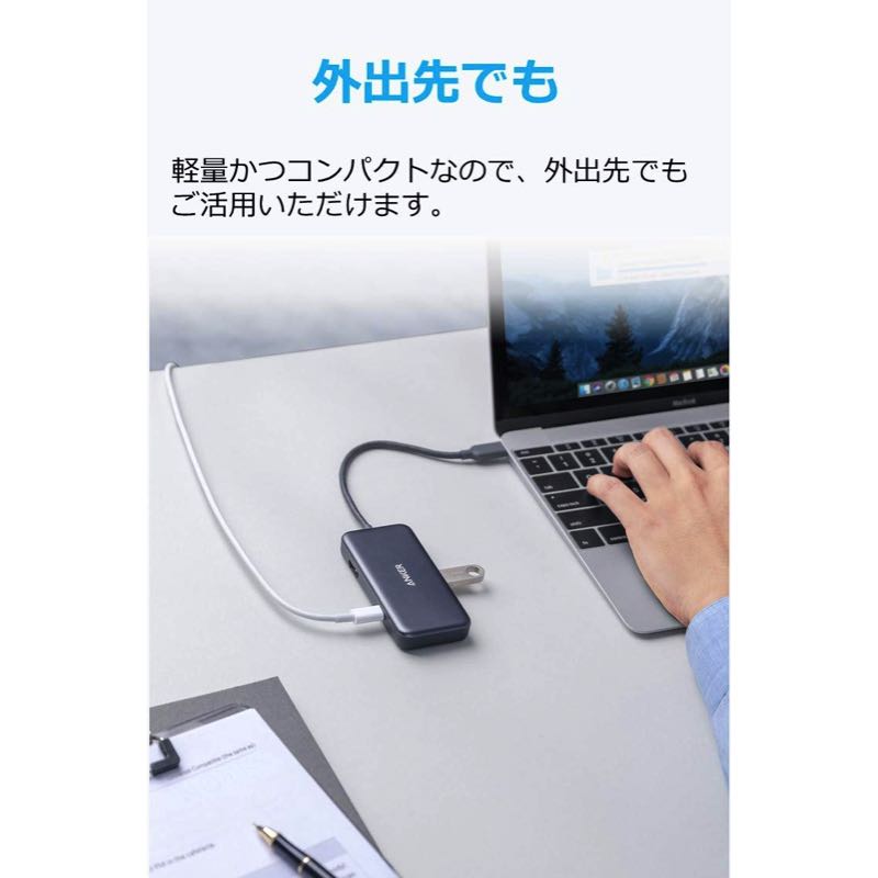 MBA2018で充電しながらサブディスプレイに出力しUSBのmicro sdカードリーダーから写真を移す。必要十分な機能が揃ってます。今のところ持ち運ぶ用途は特にないのでサイズなども問題ないです。