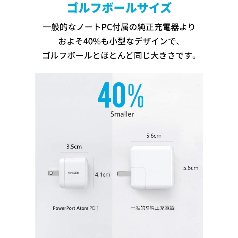 Anker PowerPort Atom PD 1 (USB-C & USB-C ケーブル 1.8m セット)