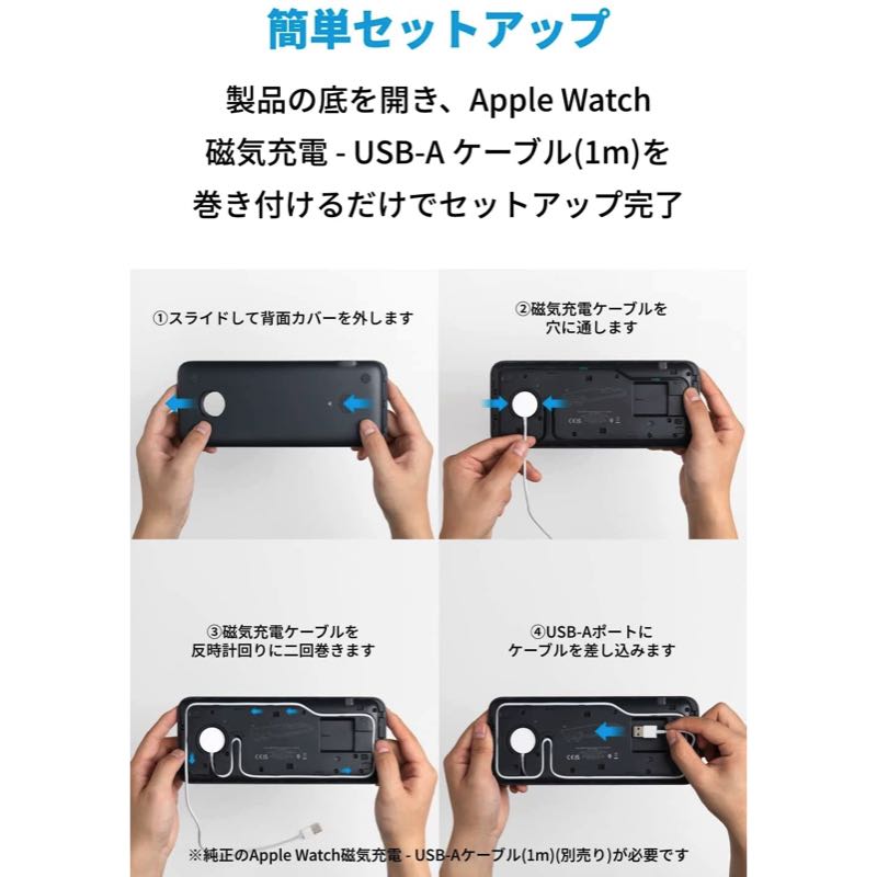 | パッケージ内容 | Anker 333 Wireless Charger (3-in-1 Station) 、USB PD対応USB急速充電器、USB-C & USB-C ケーブル (約1.5m) 、取扱説明書、18ヶ月保証 + 6ヶ月 (Ankerで会員登録後) 、カスタマーサポート ※Apple Watchホルダーをご使用の際は、純正のApple Watch磁気充電 - USB-Aケーブル (1m) が必要です (本パッケージには含まれていません) 。 |