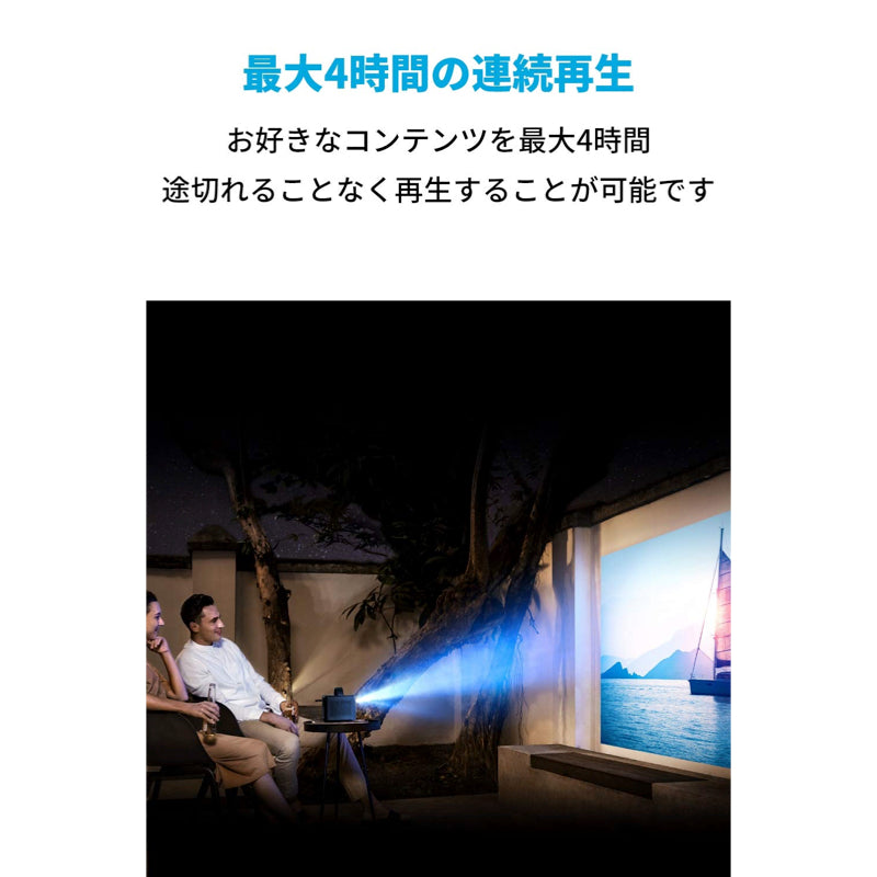 どんな部屋でも、シアタールームに変え、いつでも家族と一緒にお気に入りのコンテンツをお楽しみいただけます。また、最大4時間の長時間再生が可能なため、アウトドアでもお楽しみいただけます。多様な接続方法
