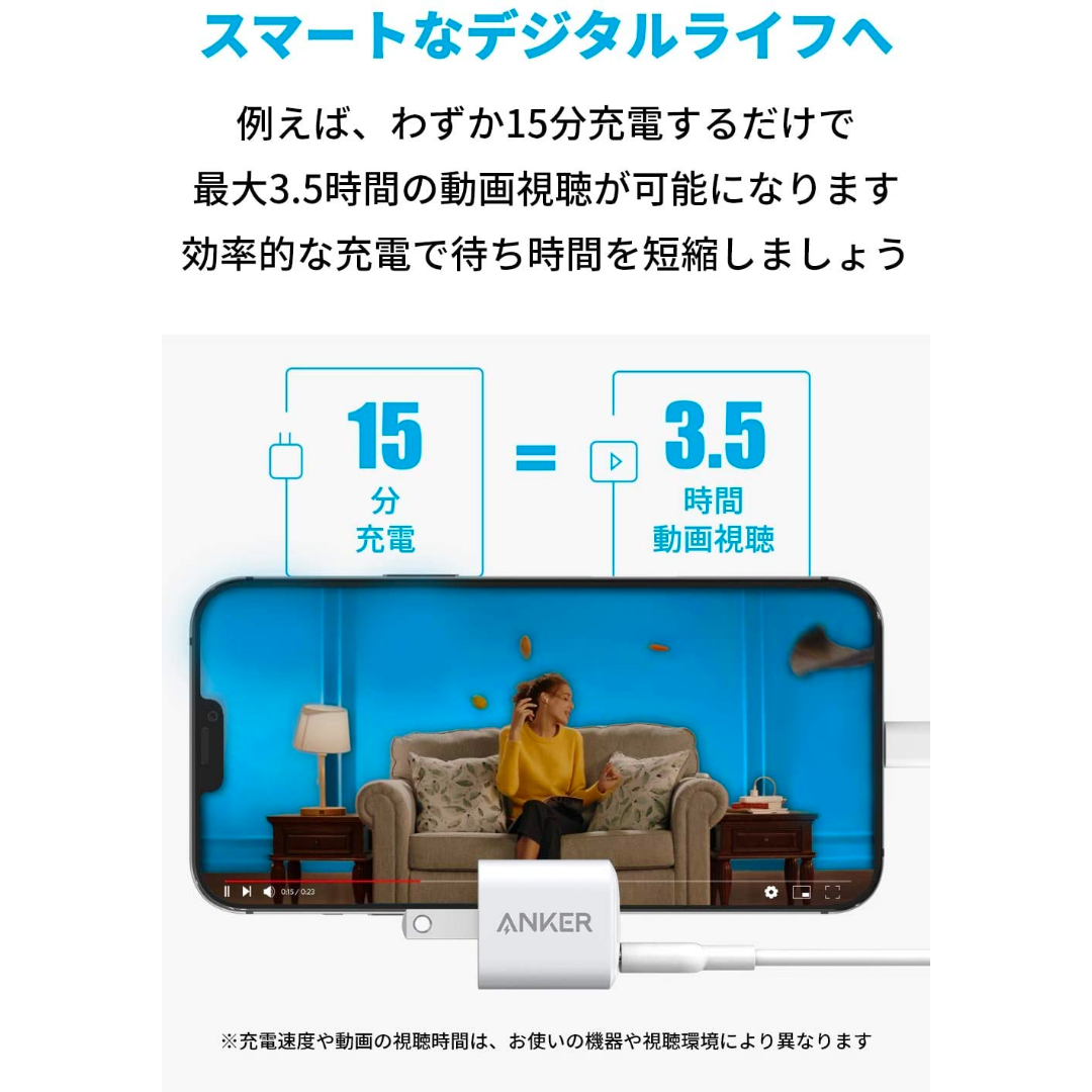 ※充電速度や動画の視聴時間は、お使いの機器や視聴環境により異なります